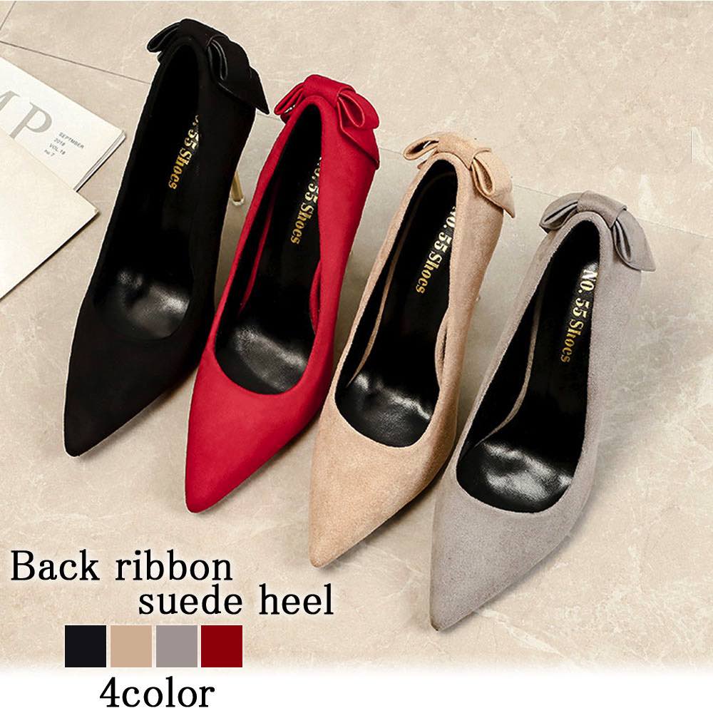 【商品名】バックリボンスエードヒール【カラー】カーキ グレー レッド ブラック【サイズ】22.5 23 23.5 24 24.5【素材】スエード【重量】ヒール8cm【季節】【スタッフコメント】秋冬のコーディネートにぴったりの温かみのあるスエードヒール。